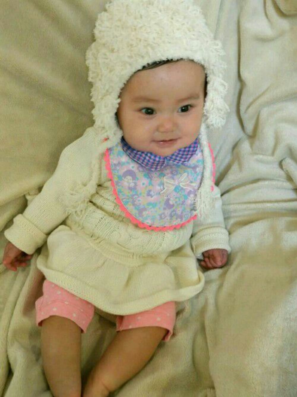 確実に可愛いと言ってもらえるクマさんコーデ❤(笑) ベビーギャップの白ニットワンピはママとお揃いの親子コーデも出来てお気に入り😘