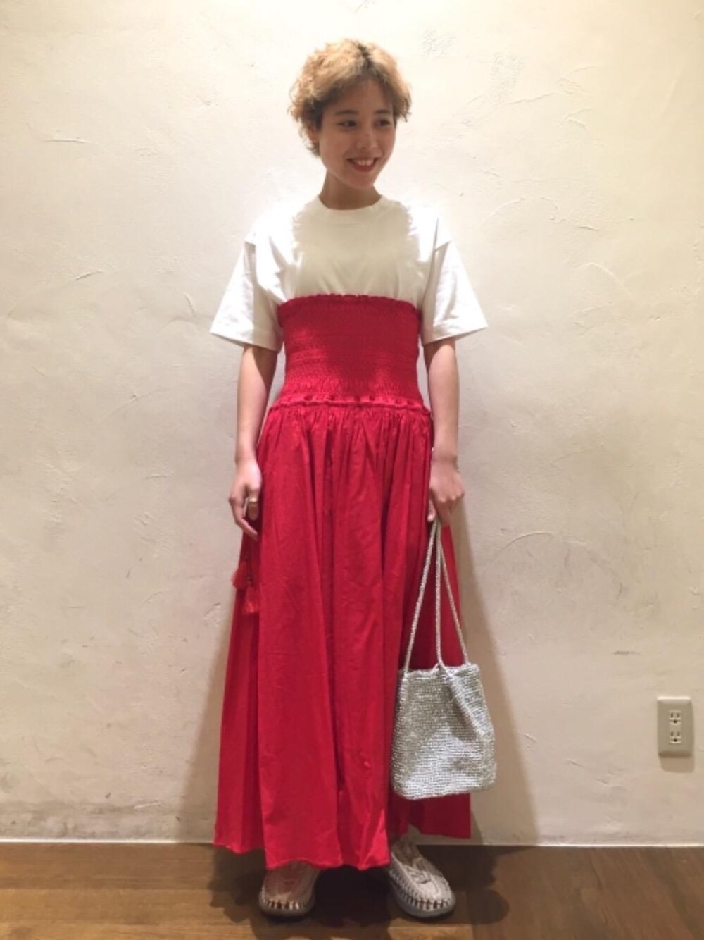 こちらのスカートは胸上まであげペアトップワンピースとしても着用でき、様々な着こなしを楽しんでいただけます。