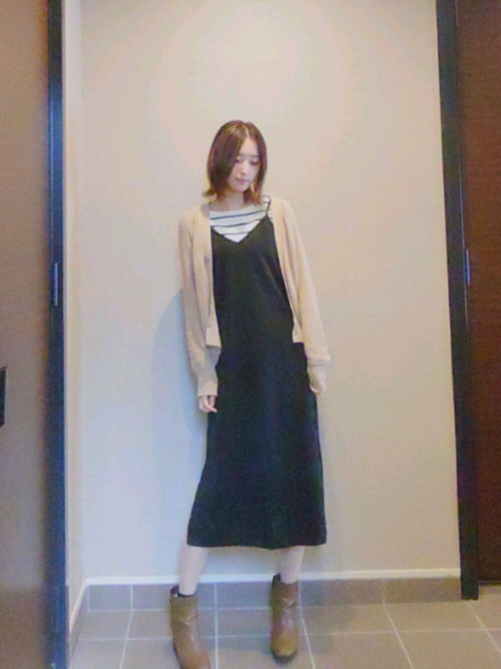ご覧いただきありがとうございます!今日のコーデはguのキャミワンピと、春らしくボーダーニットあわせてみました。 上着はダボッと感のニットカーディガン、こちらもヘビロテです。 良ければいいね&フォローお願いします♡