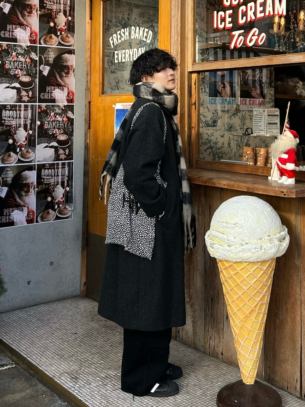 彼氏さん!!🎅🏻🎄 クリスマスデートにこんなコーデどうですか! . コートにチェックマフラー最強だと思うので やってみてください!!🤍👶🏻