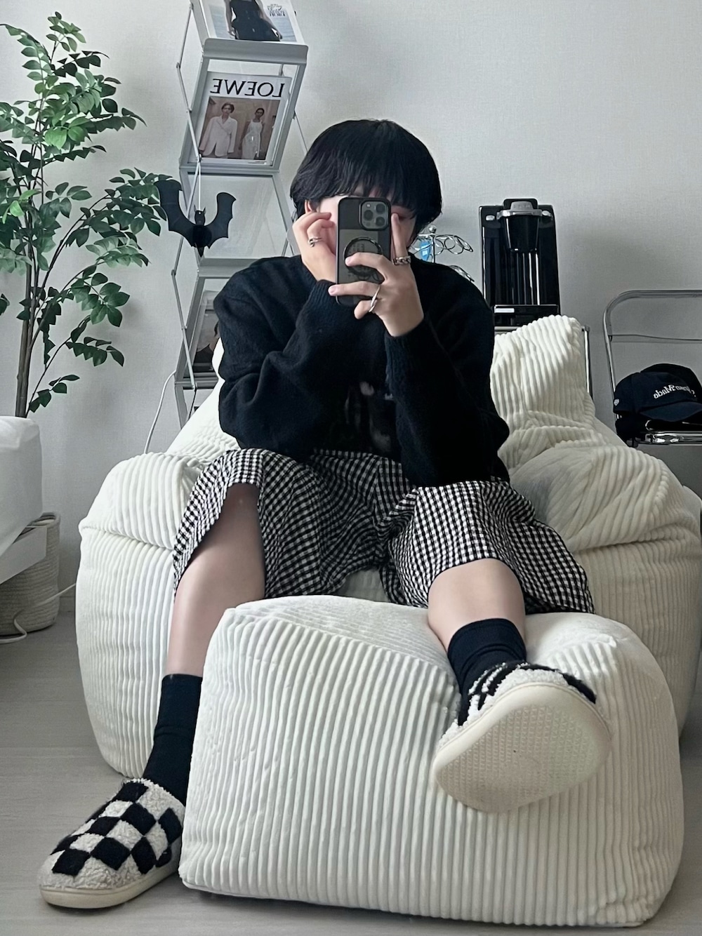 まだまだニットと長ズボンだと暑いって感じる人には、ハーフパンツがおすすめです!! 秋に楽しめるコーデの一つだと思うので、やってみてください👶🏻