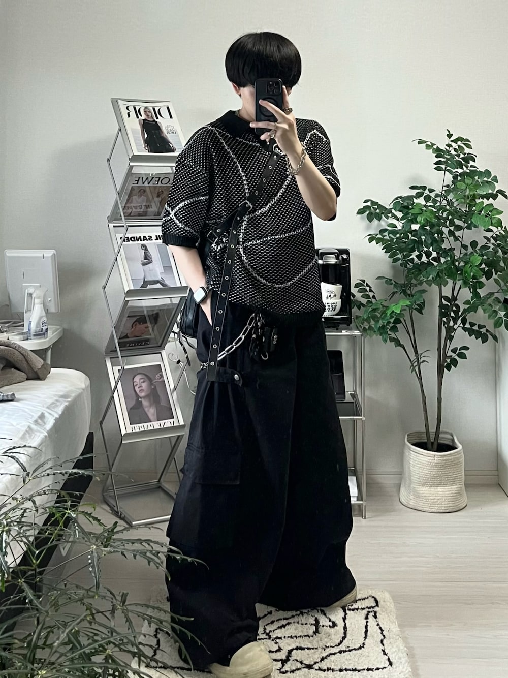 Seigoのニット/セーター「ラインアートニットポロ」を使ったコーディネート