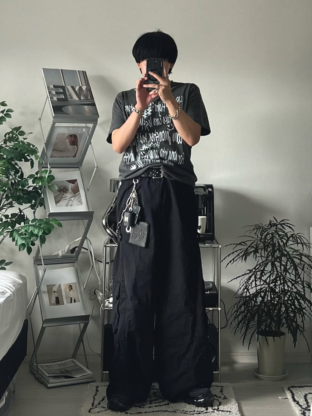 レタリングTシャツでモノトーンでも 差別化できておすすめなコーデです! 韓国ファッションで参考にしてください🧏🏻♂️