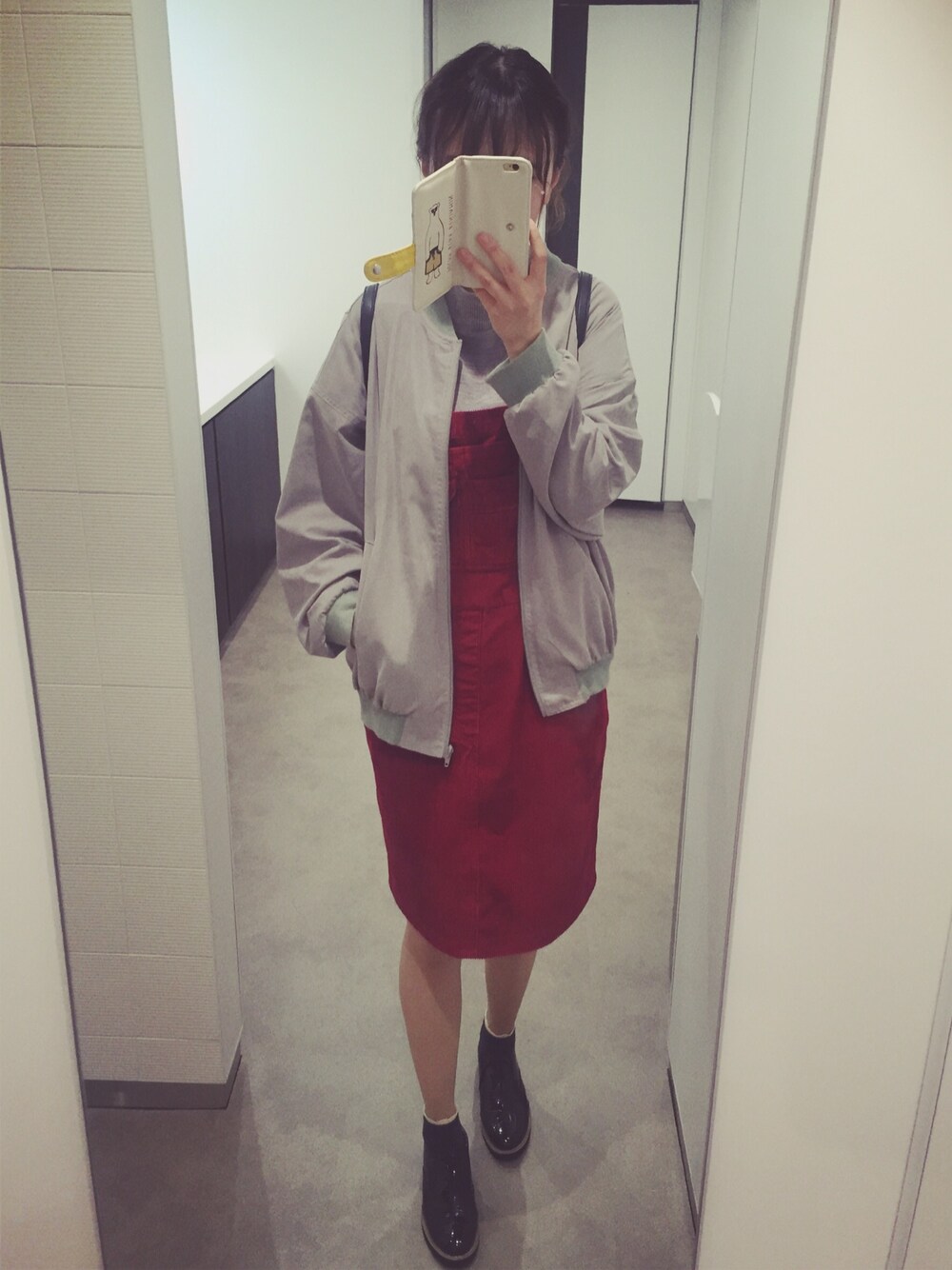赤のワンピースにひと目惚れしました(._.) 最近寒くなってきたねー 防寒バッチリでおかけくださいねー😊😊