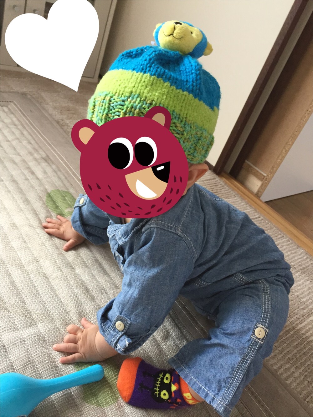 ばぁちゃんの手作り、おさるさんのニット帽♡