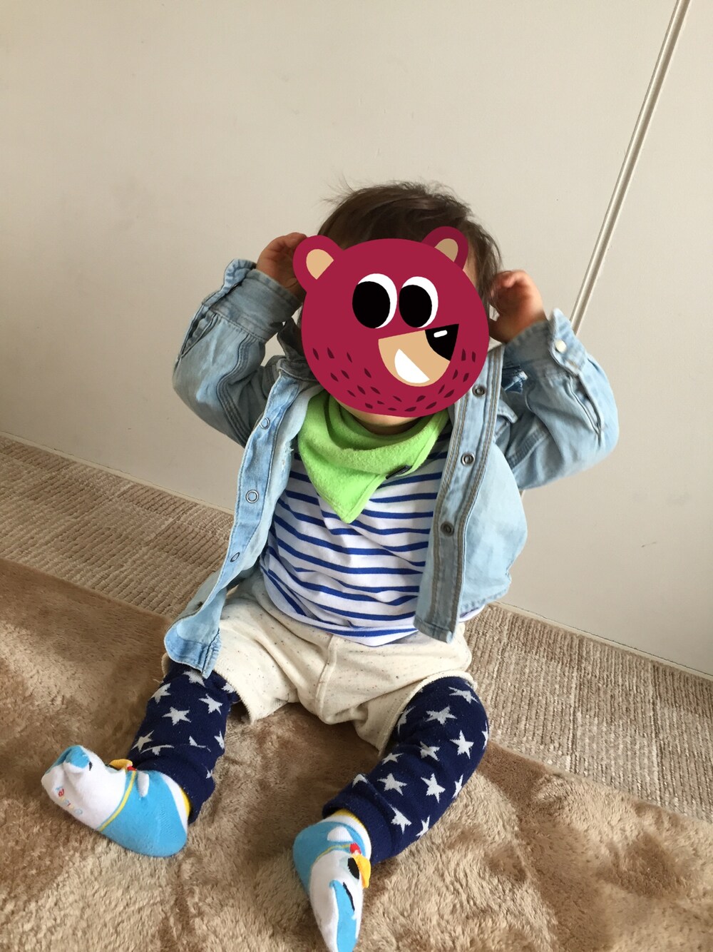 半ズボンはまだちょっと寒いけど 誕生日プレゼントでいただいた マーキーズのパンツを早く 履かせたくて履いてもらいました(^O^) レッグウォーマーって便利(笑) お気に入り★