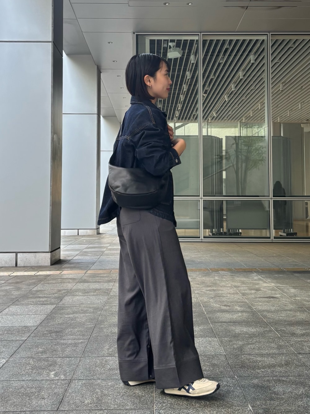 レザーのくたっと質感が可愛いバッグ 一つのベルトで肩かけ、ななめがけ、手持ちの3wayで使えます! コーデのポイントにレザーを入れて大人カジュアルな雰囲気にしてみました◎