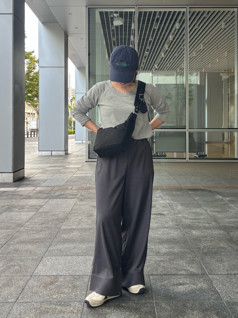 2本ベルトがついているから気分やシーンに合わせて雰囲気を変えられるショルダーバッグ! ナイロンの長いベルトの方には、金具がついているので、好きなチャームでアレンジするのもオススメです◎ グレーのワントーンコーデに合わせてメンズライクな印象にしました!