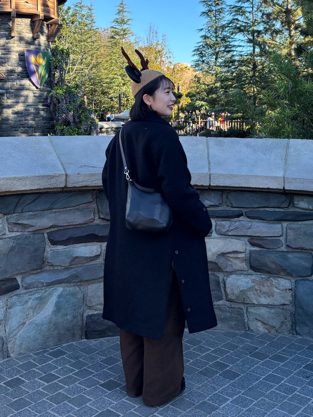 ブラック系のショルダーバッグを着用したレディースの冬コーディネートの1枚目の写真