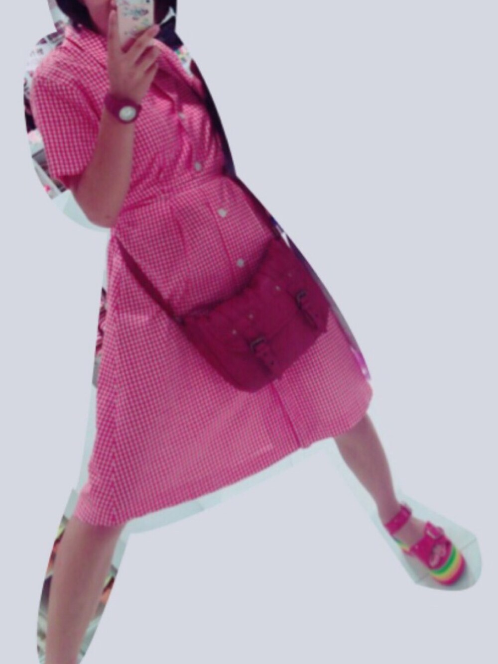 東京行ってきた ワンピースは母のお下がり 赤チェックでお気に入り✌︎ サンダルはWEGOで一目惚れした