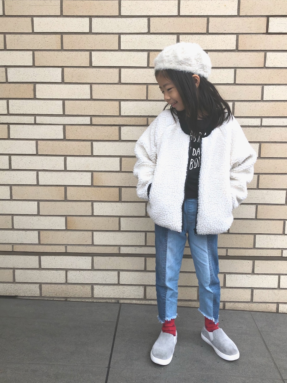 nakamo★のブルゾン「WEB限定 KIDS ノーカラーボアフリースジャケット」を使ったコーディネート