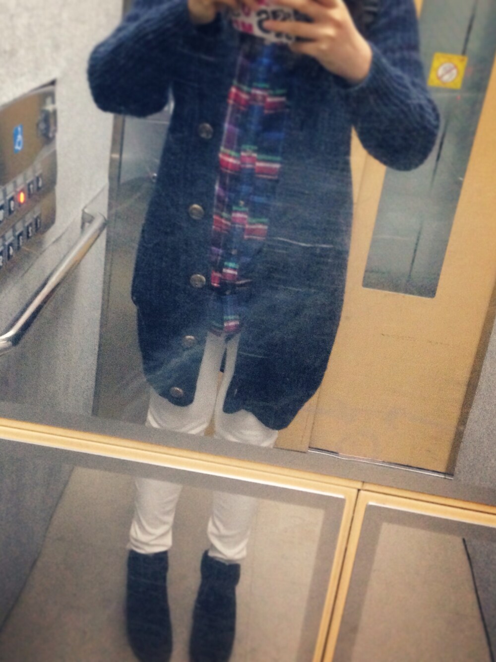 ロングカーディガンもチェックシャツもお姉ちゃんから借りたものです…。笑 昨日は暖かかったのでこれで十分でした👍💕