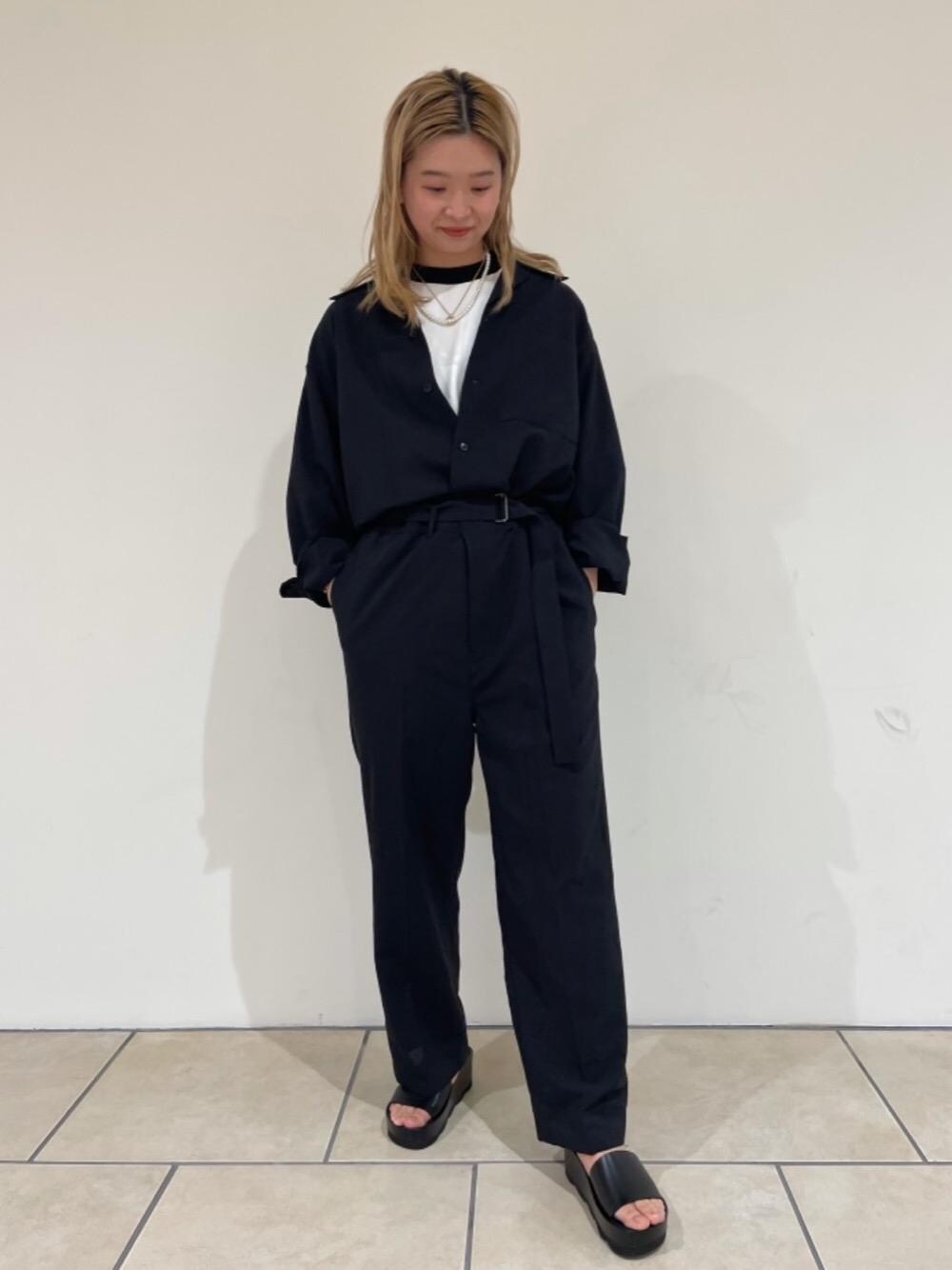 <monkeytime>のリサイクルポリエステルで作ったジャンプスーツはとても軽くて涼しいのでこれからの季節にばっちりです!別注wranglerのTシャツで脱いでも様になるコーディネートにしました。