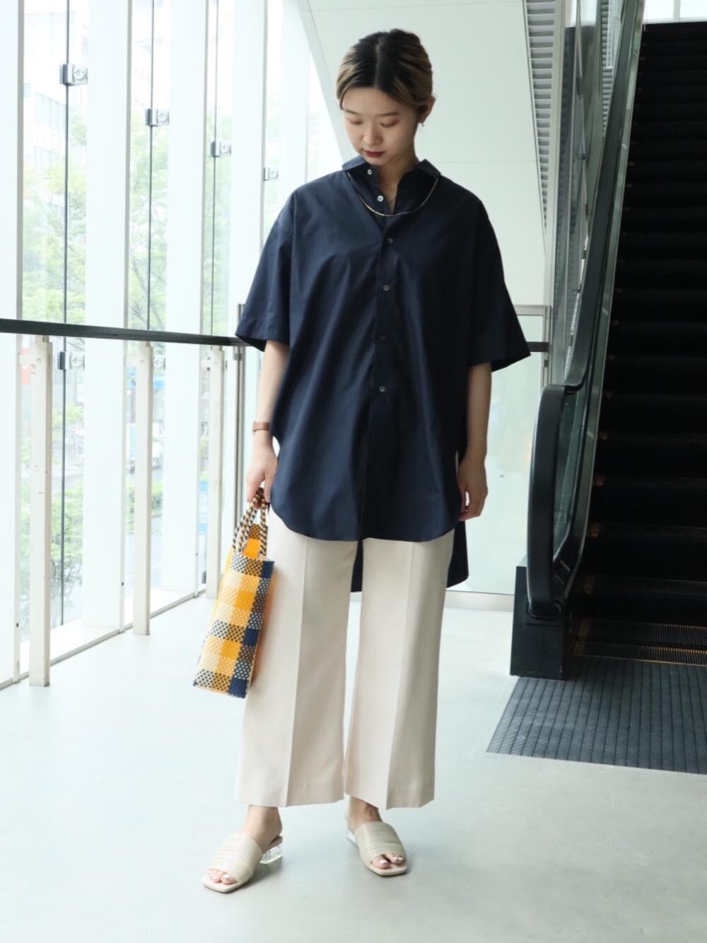 ・身長:165cm/肩周りも肉付きのいい骨格ウェーブ ・足のサイズ:24cm/幅広め/甲ふつう 【サイズ感】 シャツはフリーサイズのメンズですがかなりゆったりとしたシルエットで着丈が長いのが特徴です。 パンツは全体的にワイドめなシルエットです。 【素材感】 シャツはドレスシャツのような上品で滑らかな素材感です。 【着心地】 パンツは程よくストレッチが効いておりサイドはゴムになっているのではき心地抜群です◯ 【コーディネートポイント】 上品な生地感の<5525 gallery>のシャツを主役にAラインなシルエットを意識してコーディネートしました。かなり着丈が長く、深めのスリットが入っているので女性の体型カバーにもばっちりです!