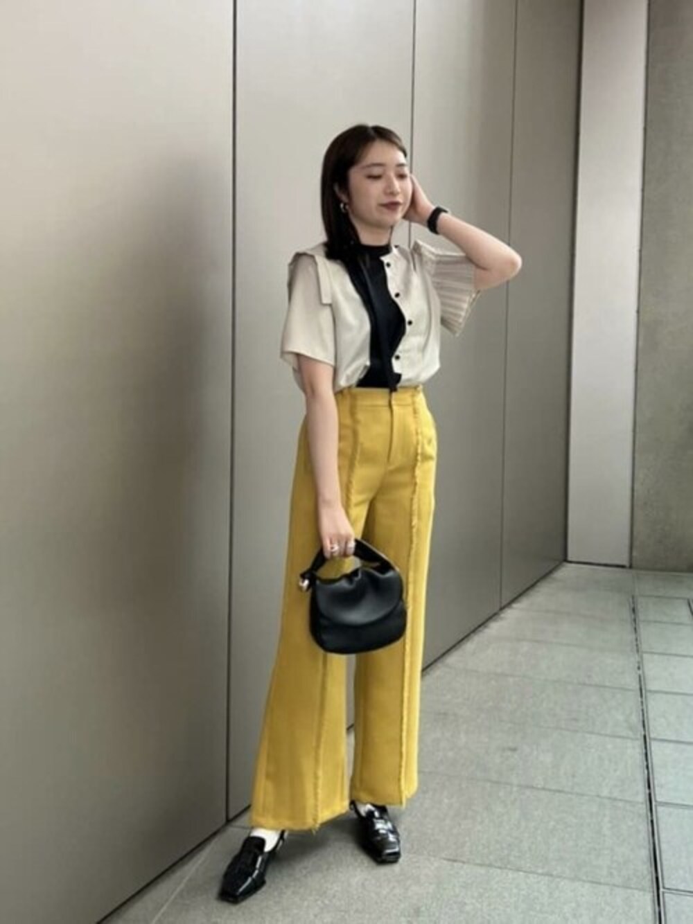 柿原 萌々子のシャツ/ブラウス「プリーツブロッキングブラウス」を使ったコーディネート
