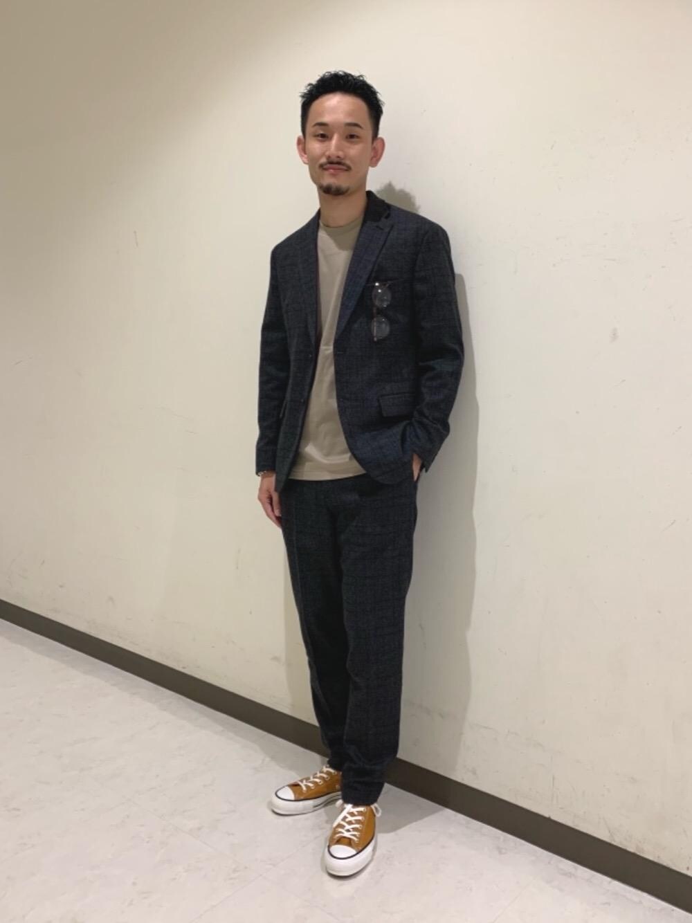 ■身長:174cm ■体重:63kg ■体型:痩せ型 ■普段サイズ:トップスM/ボトムM/シューズ26.5cm 【サイズ感】 ジャケット:すっきり カットソー:身幅はややゆとりあるが、着丈は短め パンツ:すっきり細め 【素材感】 ジャケット・パンツ:ウールの様にやや起毛感のあり温かみがある カットソー:程よい光沢があり、少しモチッとしている 【コーディネートのポイント】 セットアップをインナーとスニーカーでカジュアルダウンしし、BEAUTY&YOUTHらしいコーディネートにしました。