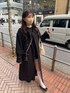 休日コーデ🐩 今年は初めて黒のアウターにチャレンジ! Lサイズで長めあえて長めの丈にした☺️♡ シルエット綺麗で可愛い〜! スウェットもだぼっと着れてお気に入り💞