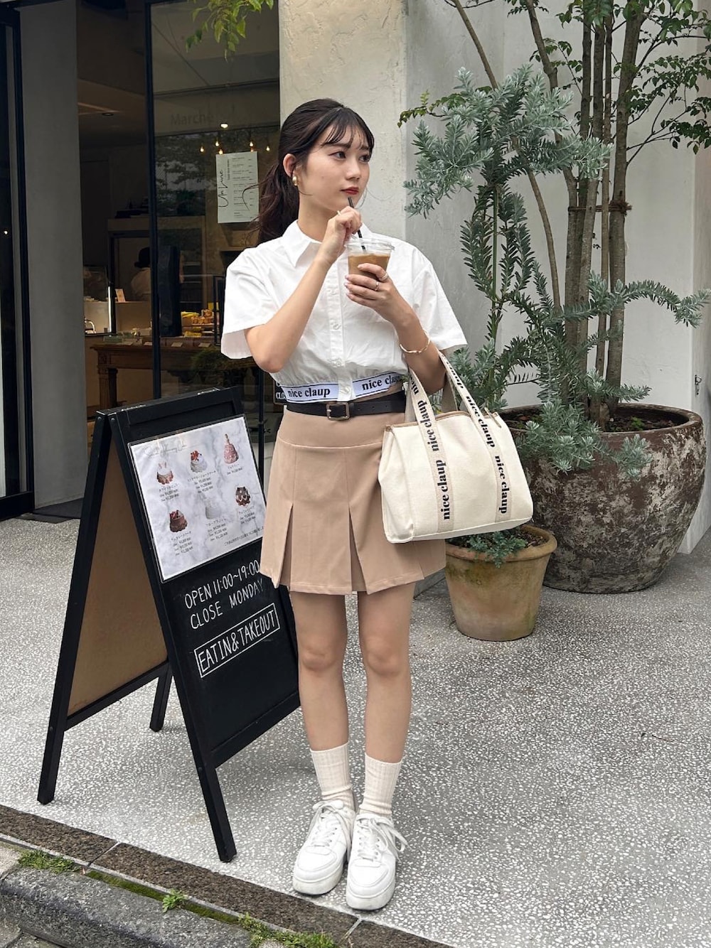 おはな(one after another NICE CLAUP)のシャツ/ブラウス「ロゴテープショートシャツ」を使ったコーディネート
