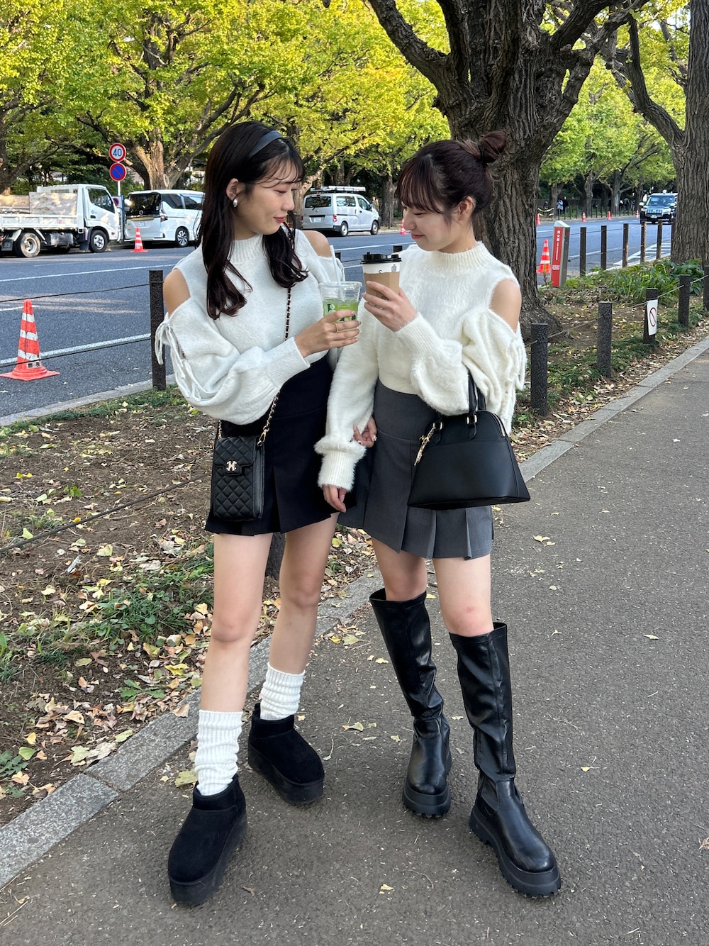 おはな(one after another NICE CLAUP)のニット/セーター「肩あきマルチウェイ/あざとフェザーリボンニット」を使ったコーディネート