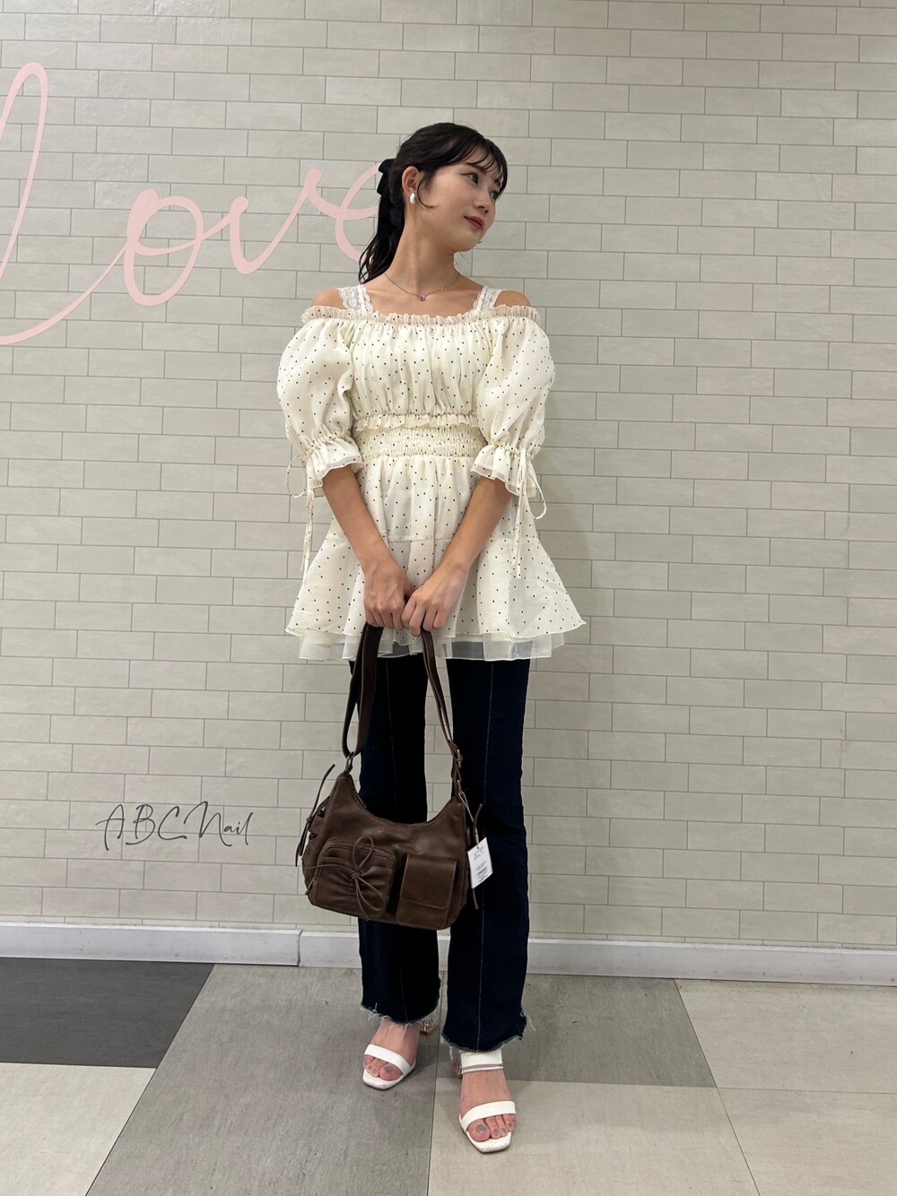 肩のリボン取ってオフショルで着てみた🎀