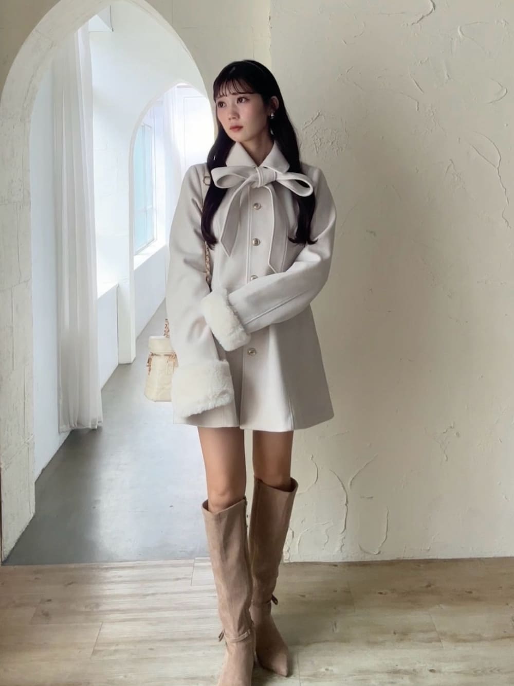 おはな(one after another NICE CLAUP)のステンカラーコート「2wayリボンミドルコート/SMサイズあり」を使ったコーディネート