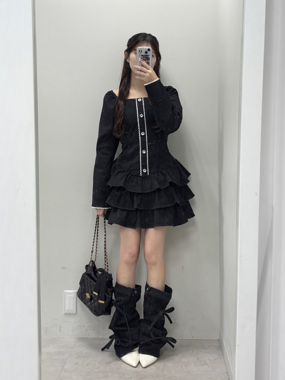 おはな(one after another NICE CLAUP)のワンピース「【Denim Collection】レースアップティアードミニワンピース」を使ったコーディネート