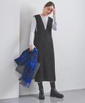 [身長] 154cm [普段サイズ] トップス/36ボトムス/34・36 シューズ/、23.5cm [サイズ感・素材感・着心地] シャツ:着丈長めでゆったりとした身幅 ジャンパースカート:VネックですっきりとしたIラインシルエット [コーディネート] インナーに明るいブルーのシャツを合わせ、足元は白のブーツでモードな雰囲気にしました。身幅がゆったりしているので、様々なインナーとコーディネートお楽しみ頂けます。
