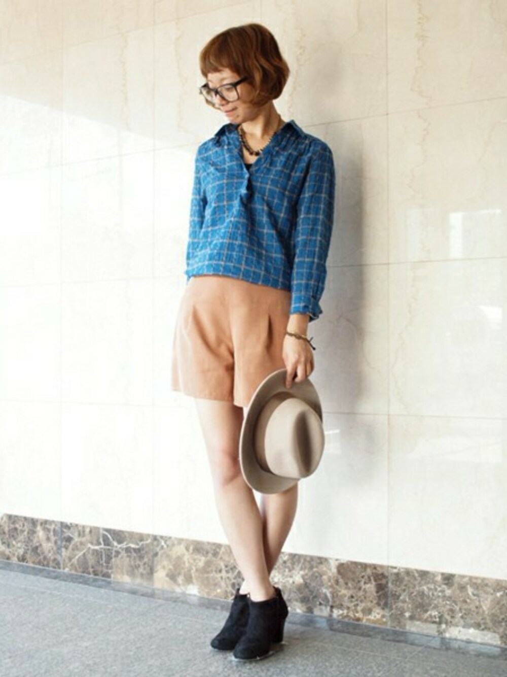 今の気候にぴったりなチェックシャツ。シンプルなショートパンツですっきりと合わせています。よれ感のある素材でカジュアルな雰囲気に。肩掛けやウエストに巻いてアクセントとしても大活躍します。