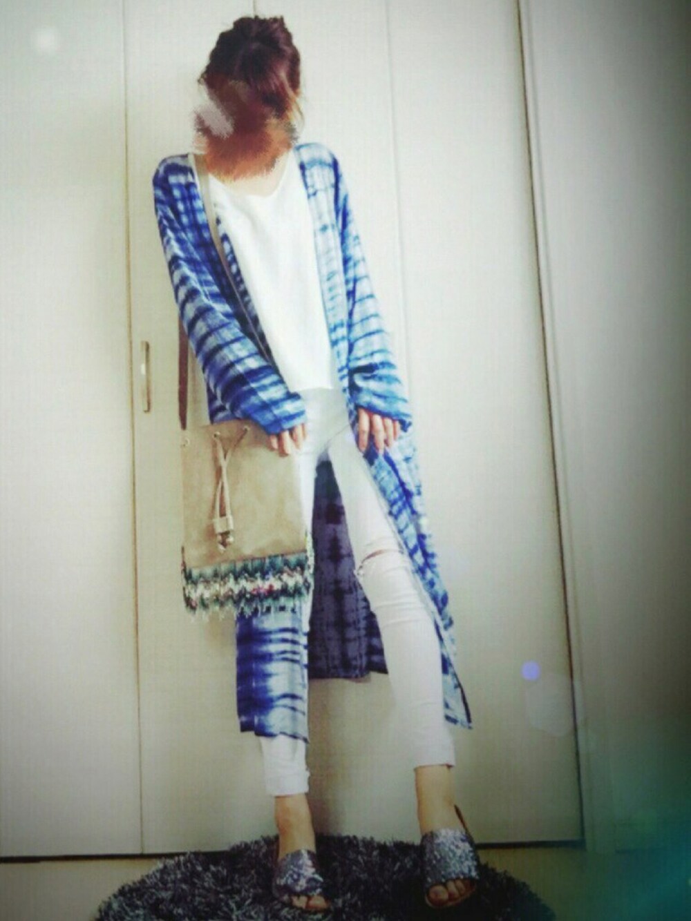 爽やかな海のイメージで。 今期のアングリッドのタイダイ柄のガウンは、一点一点手染めらしい。 その為、店頭限定販売でした。 私だけのタイダイ柄。愛着が湧きます。 このサンダル、毎回靴擦れするんだよな。