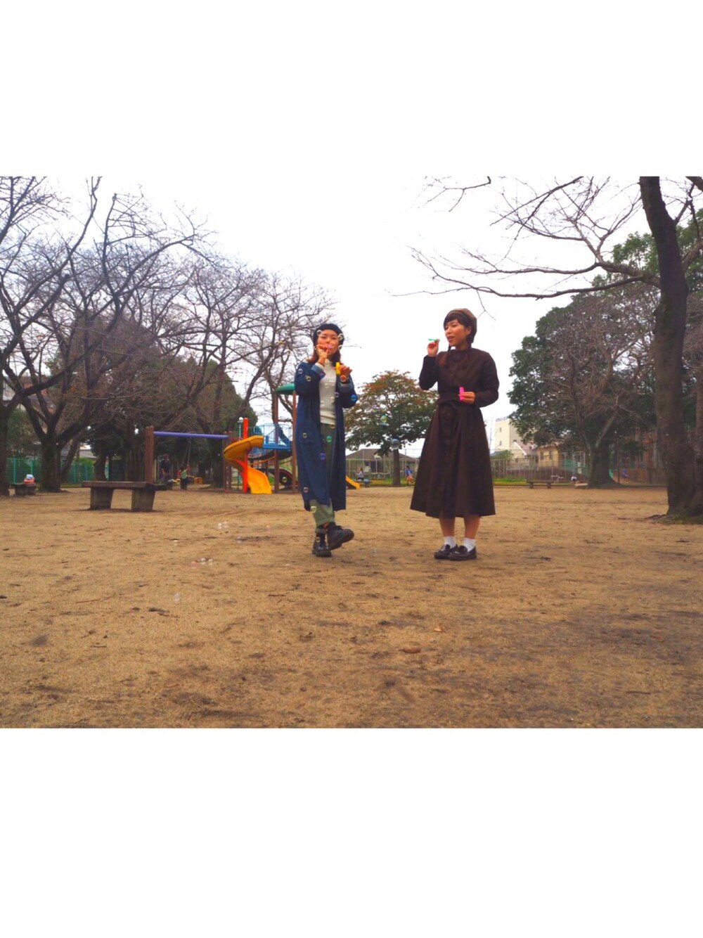 週一シャボン玉してる、、、😂 シャボン玉すき〜〜。 公園すき〜〜。 一緒にあそんでくれるこすき〜〜。 キャスケットを反対にしてベレーぽく☺️💓