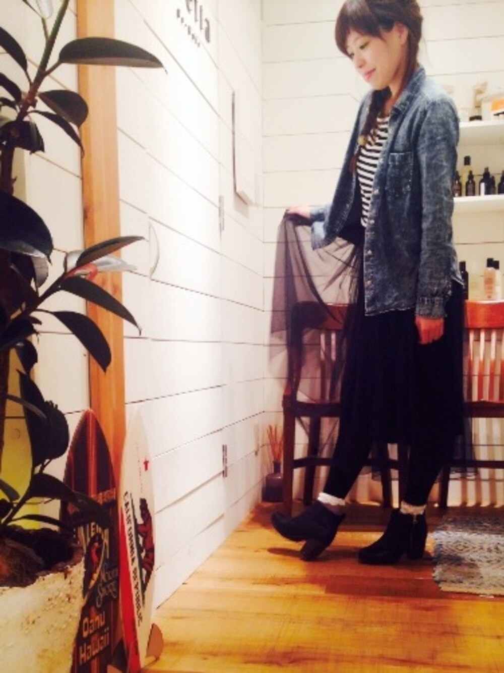 今年流行りのデニムシャツは本当に万能♥︎ チュールスカートは何年も前の物ですが、 ネイビーなので何でも合わせやすくて ヘビロテしてます!! 今日は、aRietta mamiと チュールスカートが被ったので [あったかいんだから〜ぁ]ポーズで 記念撮影しました♥︎笑