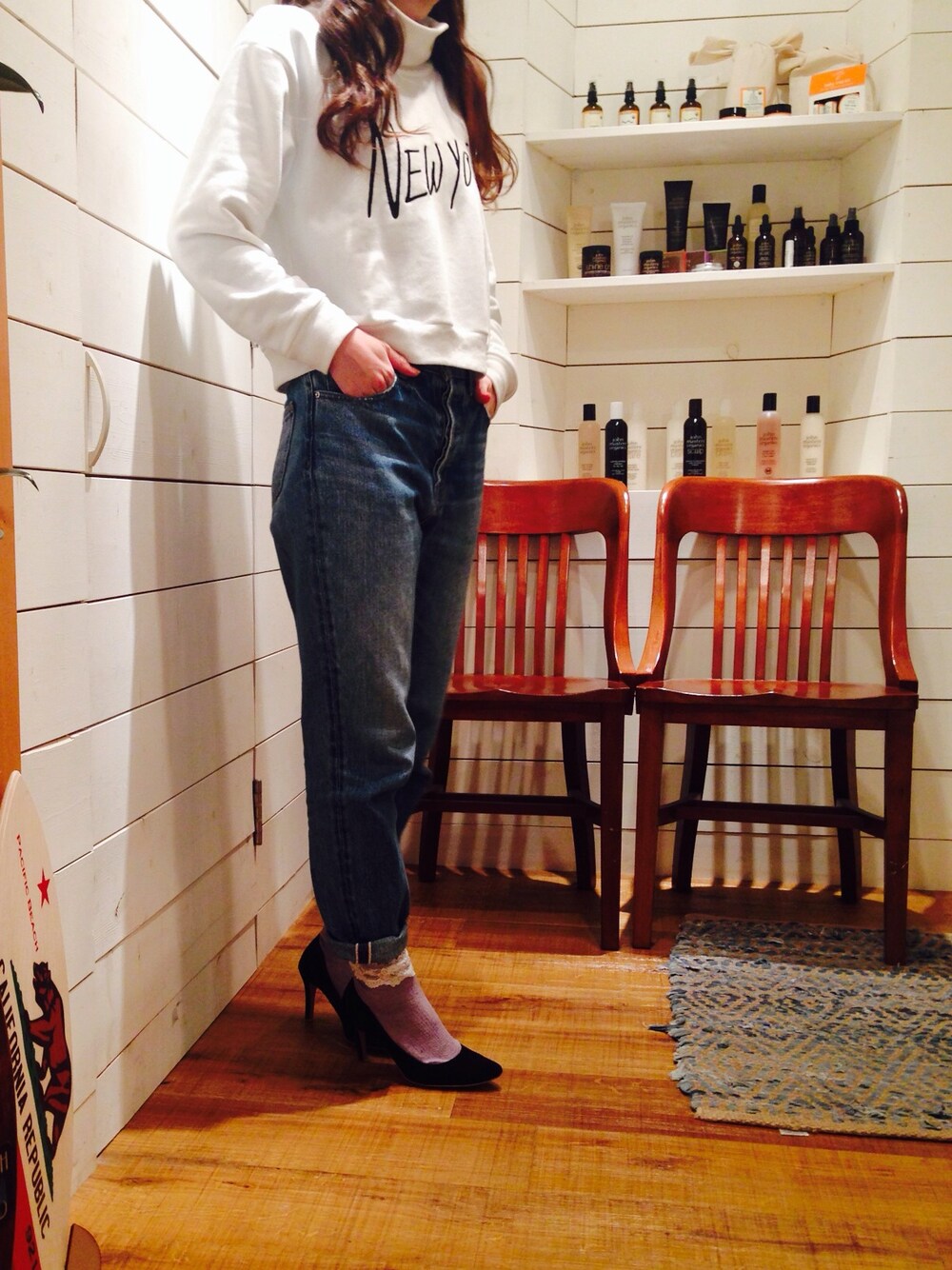 ボーイズデニムは、履きやすい!動きやすい!♥︎ 活躍デニム! こんな時の足元は靴下とパンプスで女性らしく! 白のNYハイネックスウェットは aRietta mamiに連れてってもらった笑 若者WE GOで買ったプチプラ! 合わせやすくて使えます♥︎ 今日のアレンジは… 簡単に!ウェーブに巻いてネジネジハーフアップ! バレッタは、昔先輩に頂いたお気に入りの物♥︎