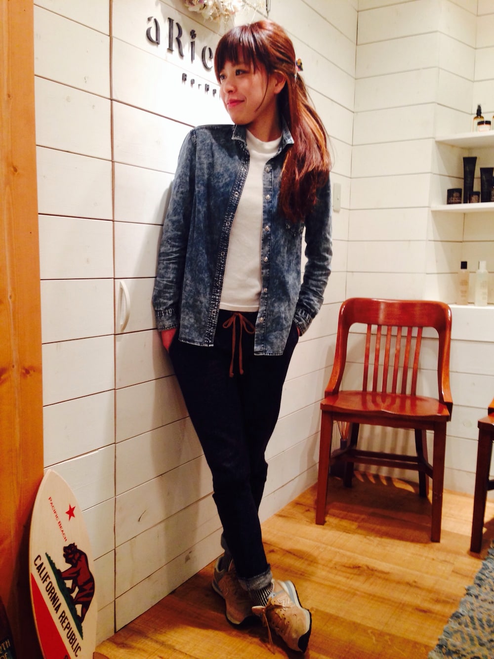 異素材だけど、デニムデニムみたいな 感じにしたかったのと、 スウェットパンツが履きたくて♥︎ NBのスニーカーは、本当に疲れない♥︎\( ö )/ 久々に履きました! ポカポカしてきましたね! やっぱり暖かいのが1番♥︎ 髪型は、、後輩のブロー練習の為 夜はストレートになりました笑 多毛なので、クリップで止めただけ! 明日も素敵な一日になりますように♥︎