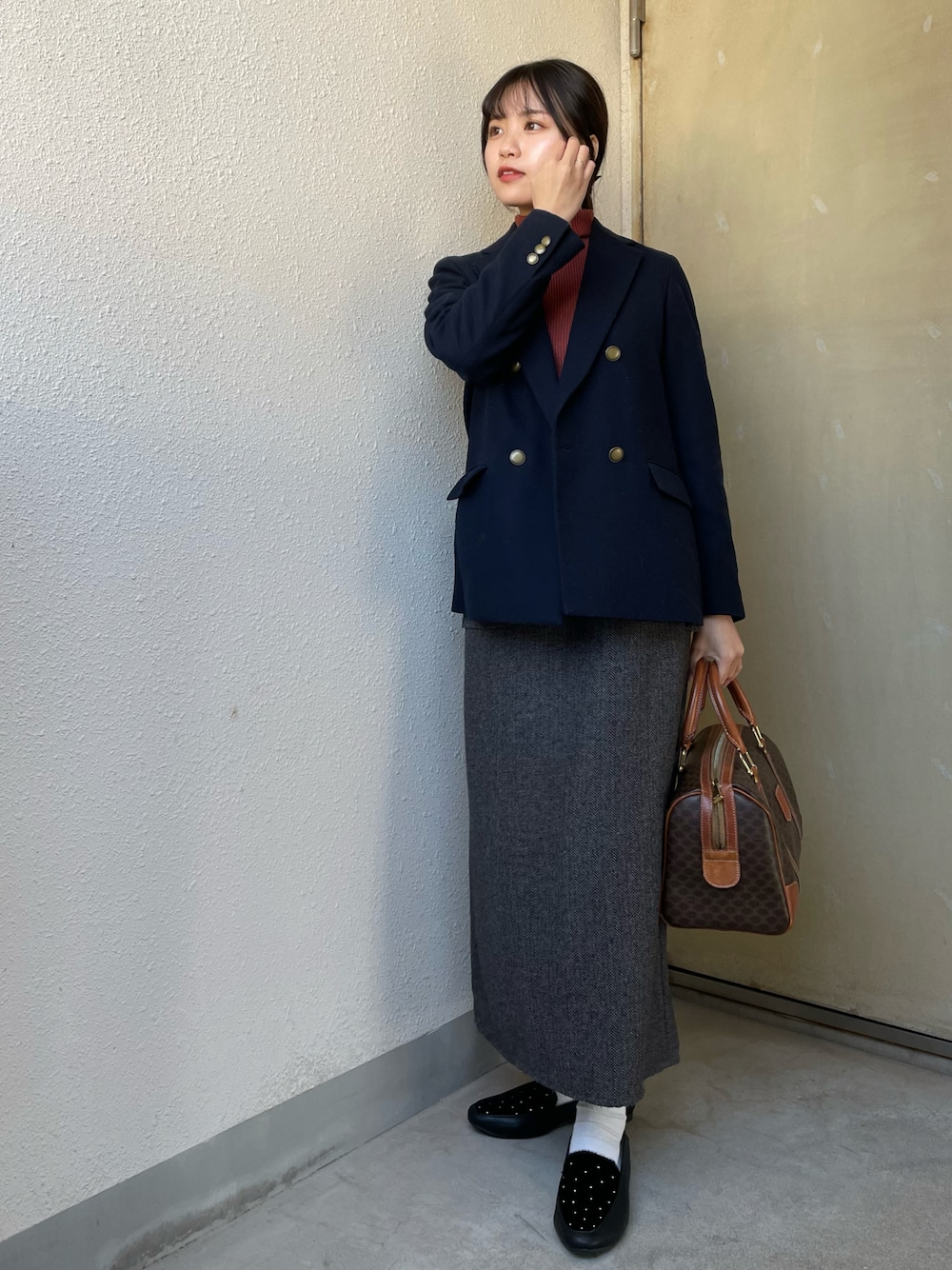 紺ブレ着回しコーデ🤍 何にでも合う紺ブレ! 中の赤のニットがワンポイントです✨ 【Instagram】@k.ya_9 Instagramも是非フォローお願いします👀♡