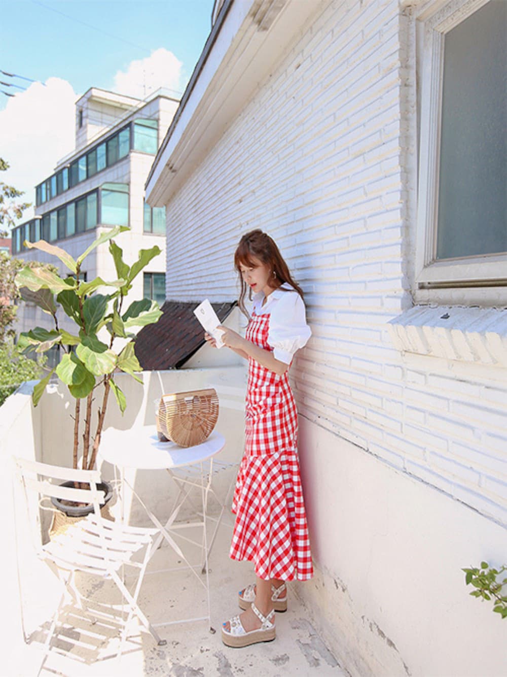 11AMのワンピース「アシメ丈チェックワンピース」を使ったコーディネート