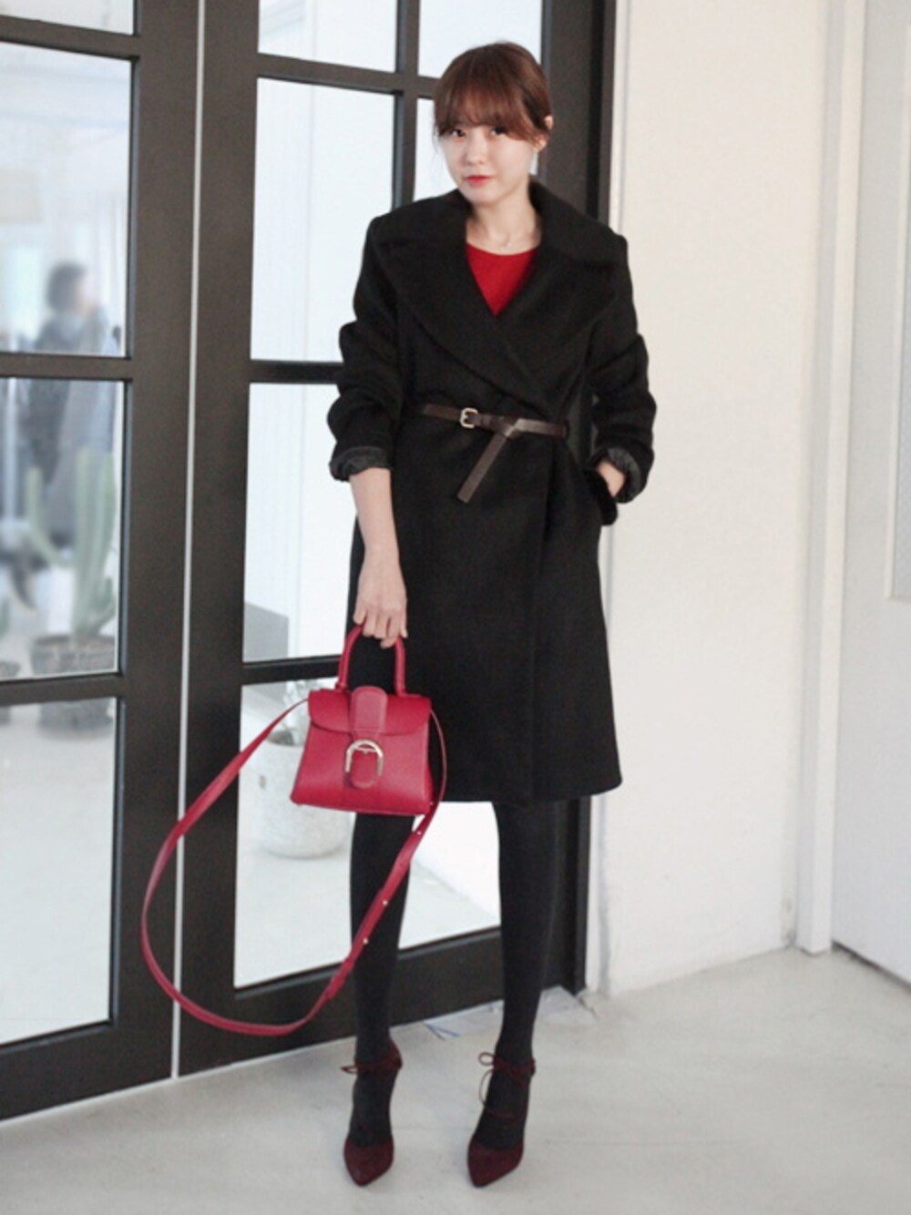 11AMのステンカラーコート「ベルト付きワイドカラーウールコート」を使ったコーディネート