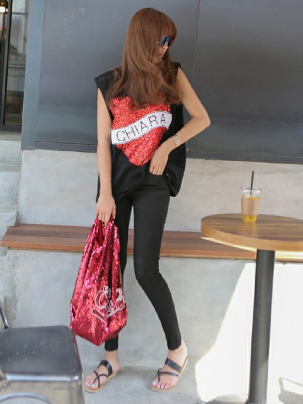 11AMのTシャツ/カットソー「スパンコールハートモチーフノースリーブTee」を使ったコーディネート