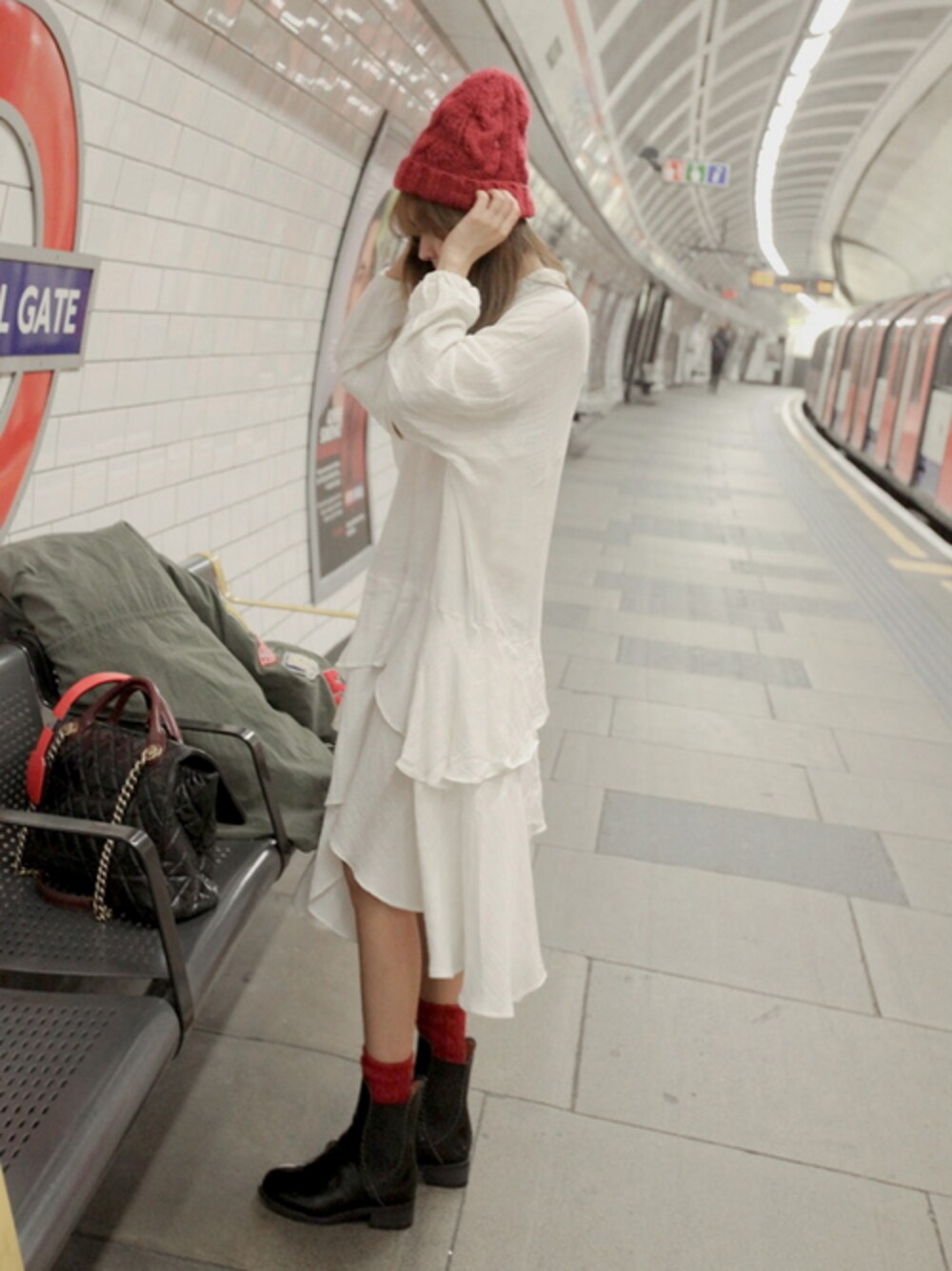 11AMのワンピース「ナチュラルフリルワンピース」を使ったコーディネート