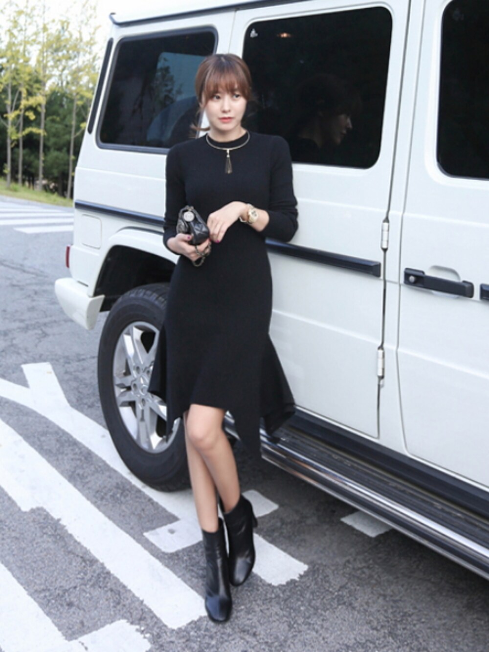 11AMのワンピース「アンバランス丈スリムフィットニットワンピース」を使ったコーディネート