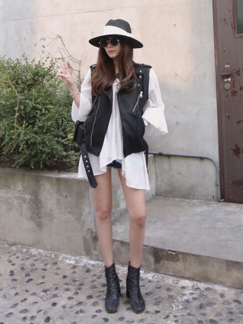 11AMのベスト「シックレザーベスト」を使ったコーディネート