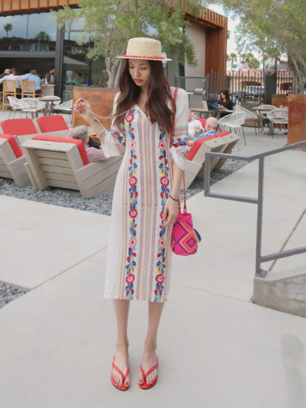 11AMのワンピース「エスニック刺繍タッセル付きワンピース」を使ったコーディネート