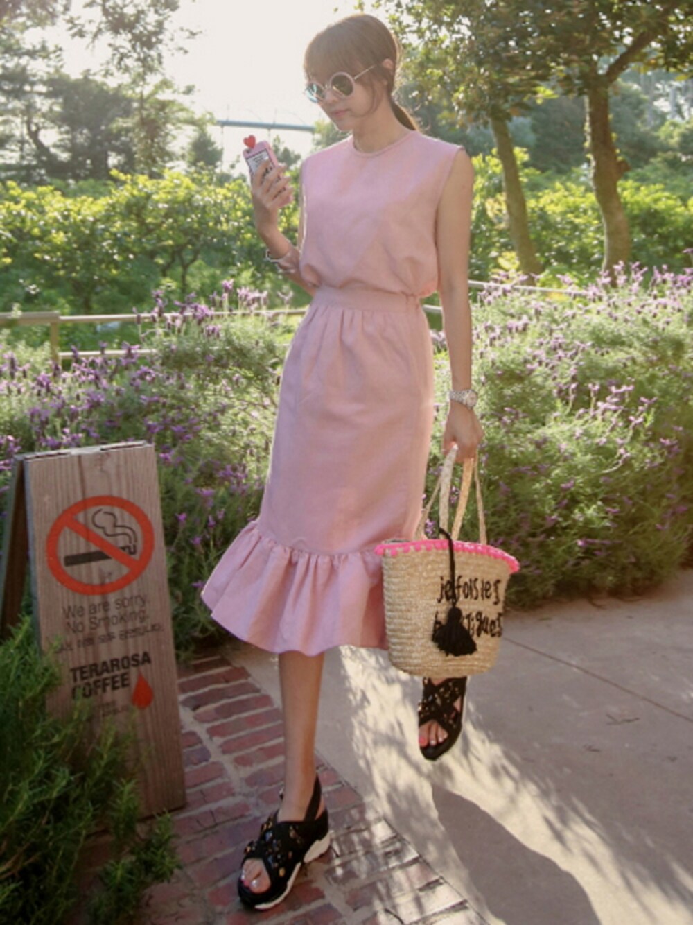 11AMのセットアップ「タンクトップ&マーメイドスカートセットアップ」を使ったコーディネート