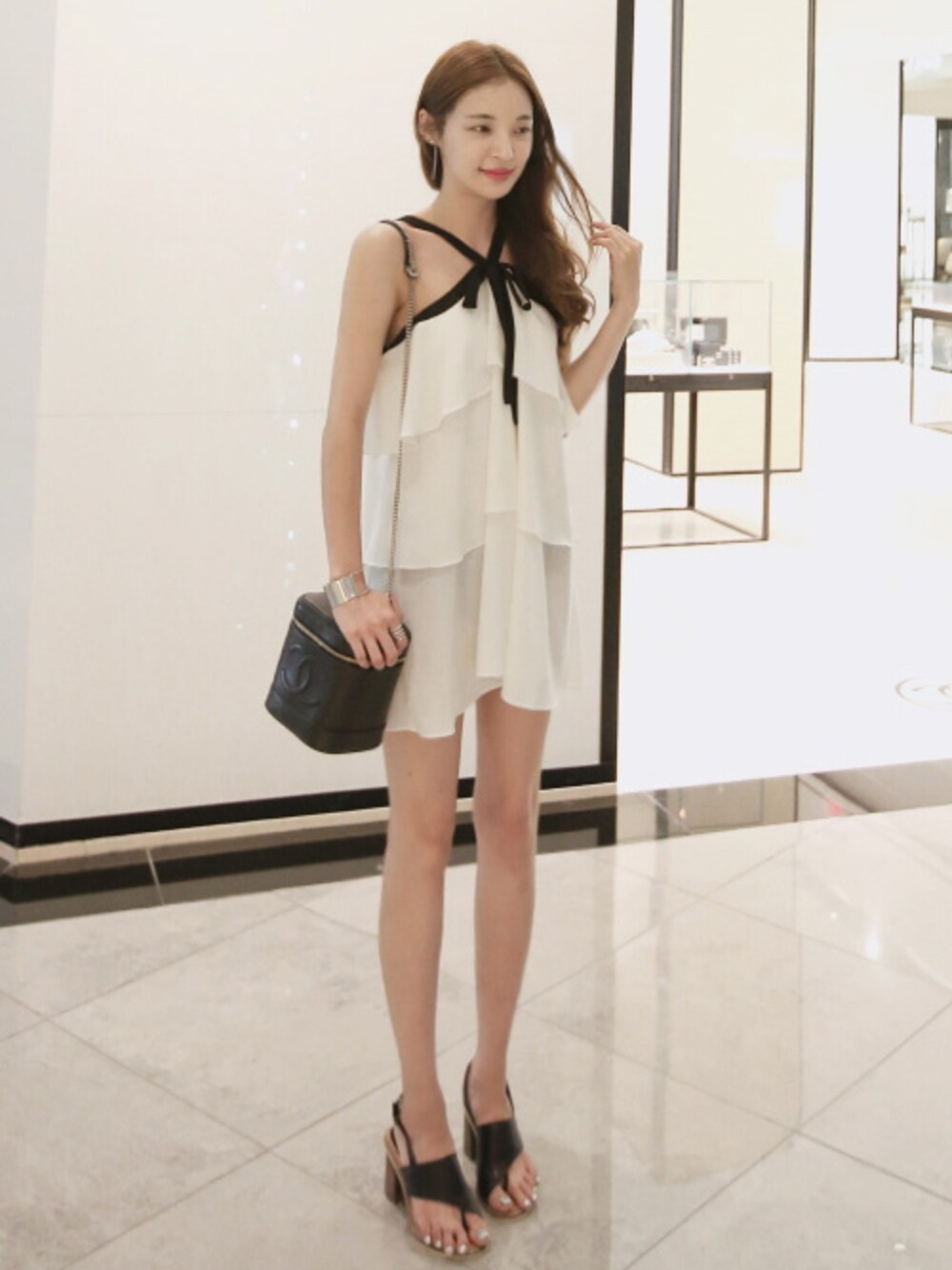 11AMのワンピース「配色ホルダーリボンワンピース」を使ったコーディネート