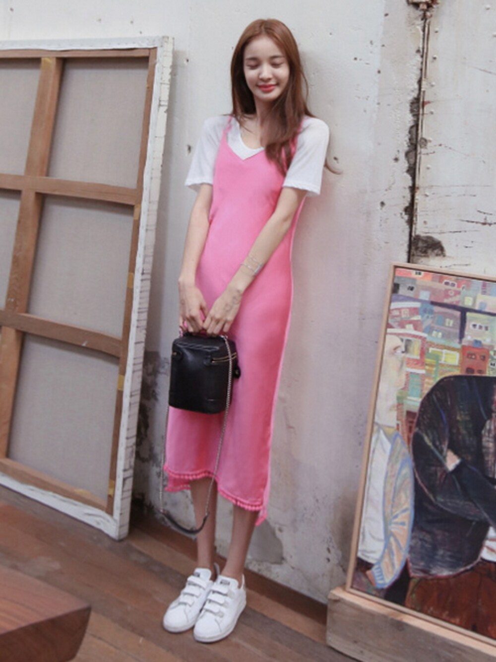 11AMのワンピース「シルキースリットキャミワンピース」を使ったコーディネート