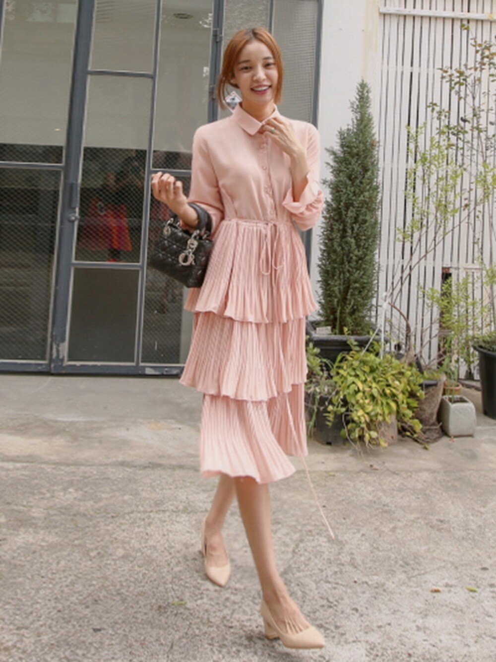 11AMのワンピース「ロマンチックプリーツワンピース」を使ったコーディネート