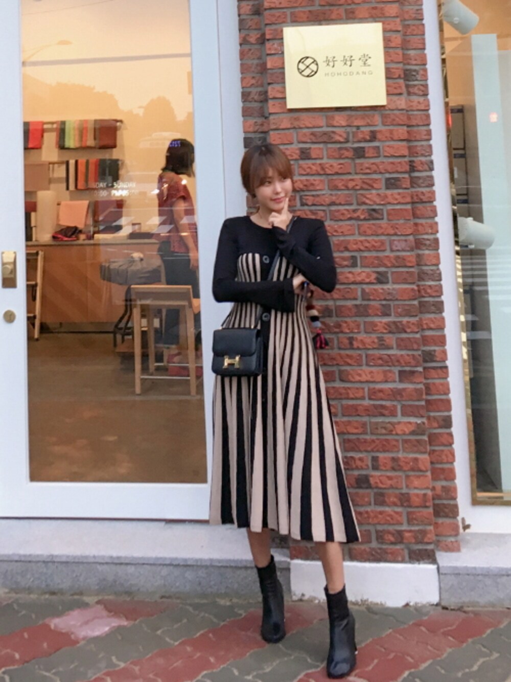 11AMのワンピース「ストライプニットマキシワンピース」を使ったコーディネート