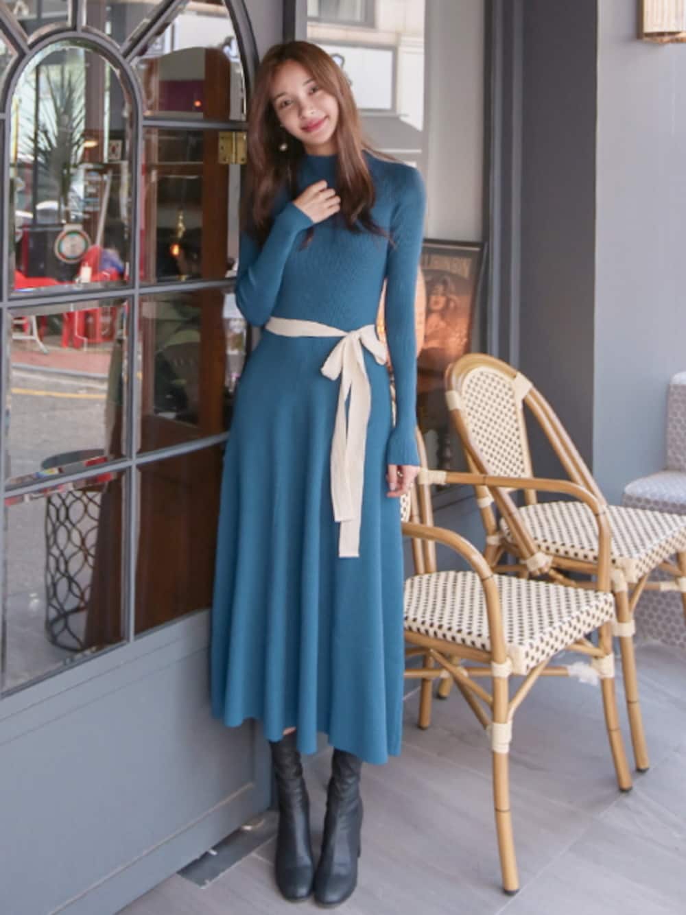 11AMのワンピース「配色リボンプチハイネックスリムワンピース」を使ったコーディネート