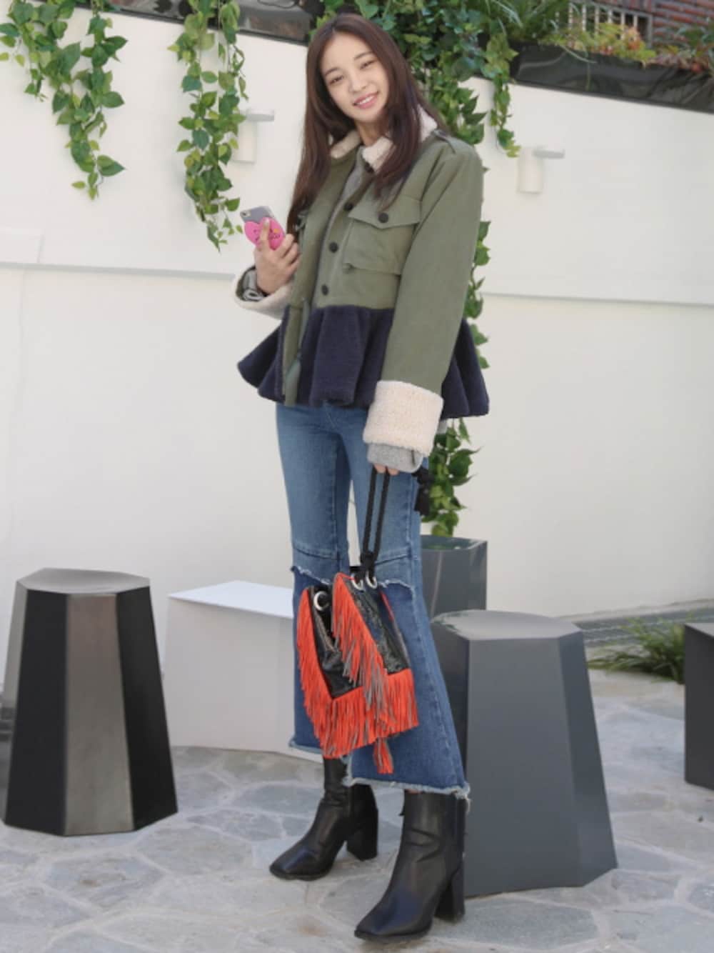 11AMのミリタリージャケット「ドッキングぺプラムジャケット」を使ったコーディネート