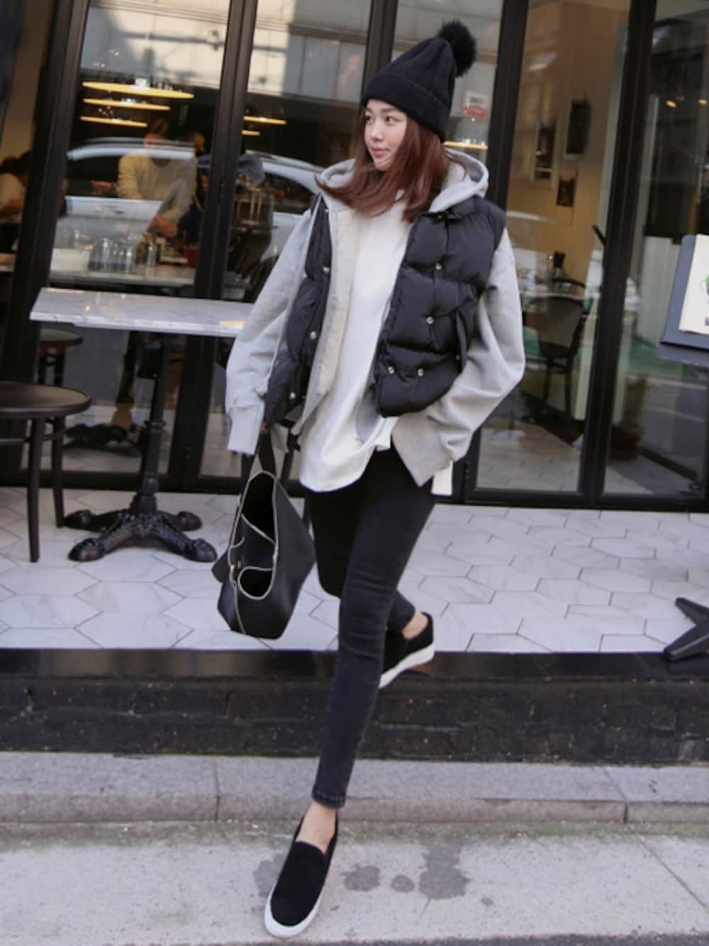 11AMのベスト「シンプルダウンベスト」を使ったコーディネート