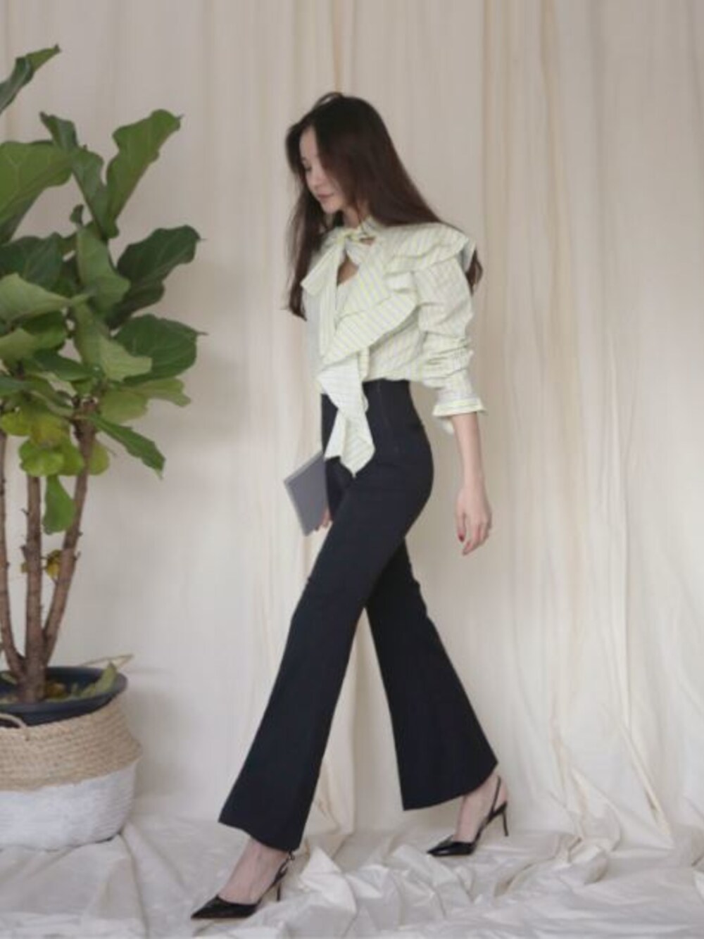 11AMのシャツ/ブラウス「ラッフルポイントストライプ柄ブラウス」を使ったコーディネート